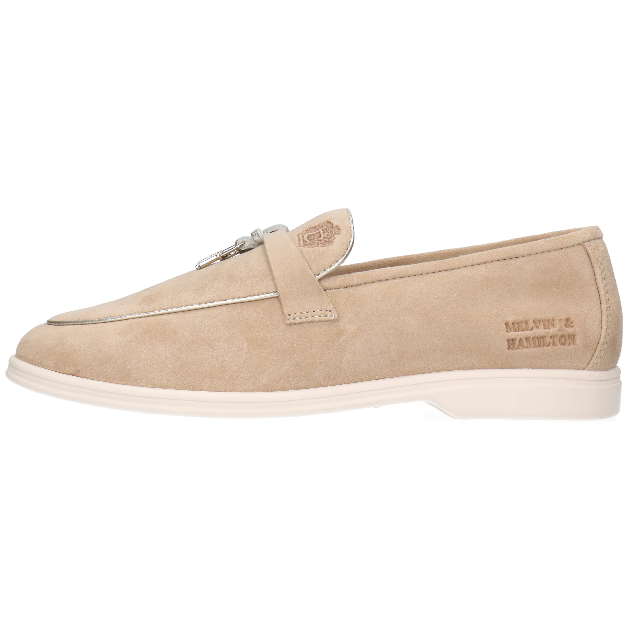 Ces mocassins confortables et casual en cuir suédé beige souple sont le reflet de la collection Adley par Melvin & Hamilton, l'un de nos modèles les plus emblématiques et les plus appréciés. Avec leur design facile à enfiler, leur souplesse et leur semelle en gomme légère, ces mocassins polyvalents Adley 24 sont dotés de mini breloques M&H décoratives. Parfaits pour les promenades printanières, les journées au bureau, les balades à la plage ou les sorties citadines, ces mocassins allient un style intemporel à un confort de tous les instants.
