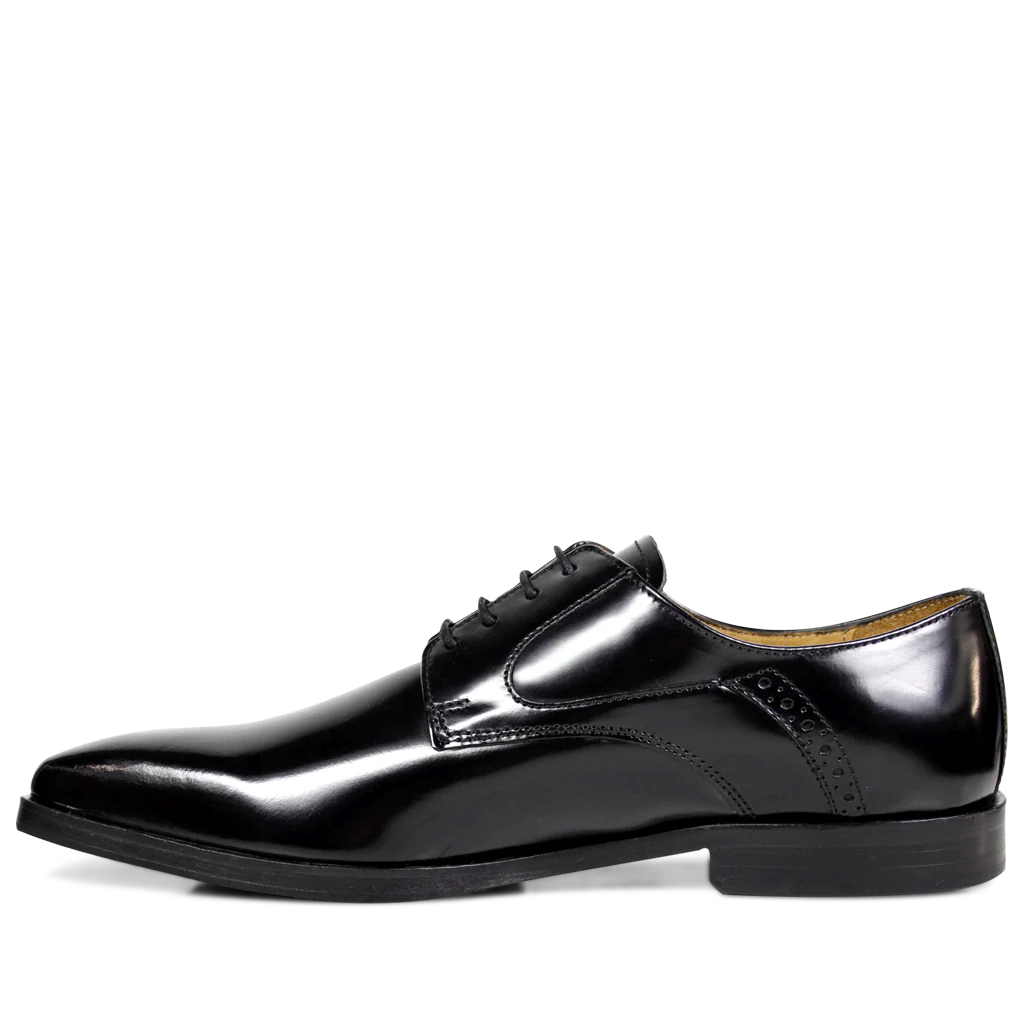 Ce beau modèle de derbies Austin 2 pour homme en cuir noir est un classique de la chaussure de ville business. Cuir lisse noir et discrètes coutures relevées de quelques perforations près du talon. Un standard !