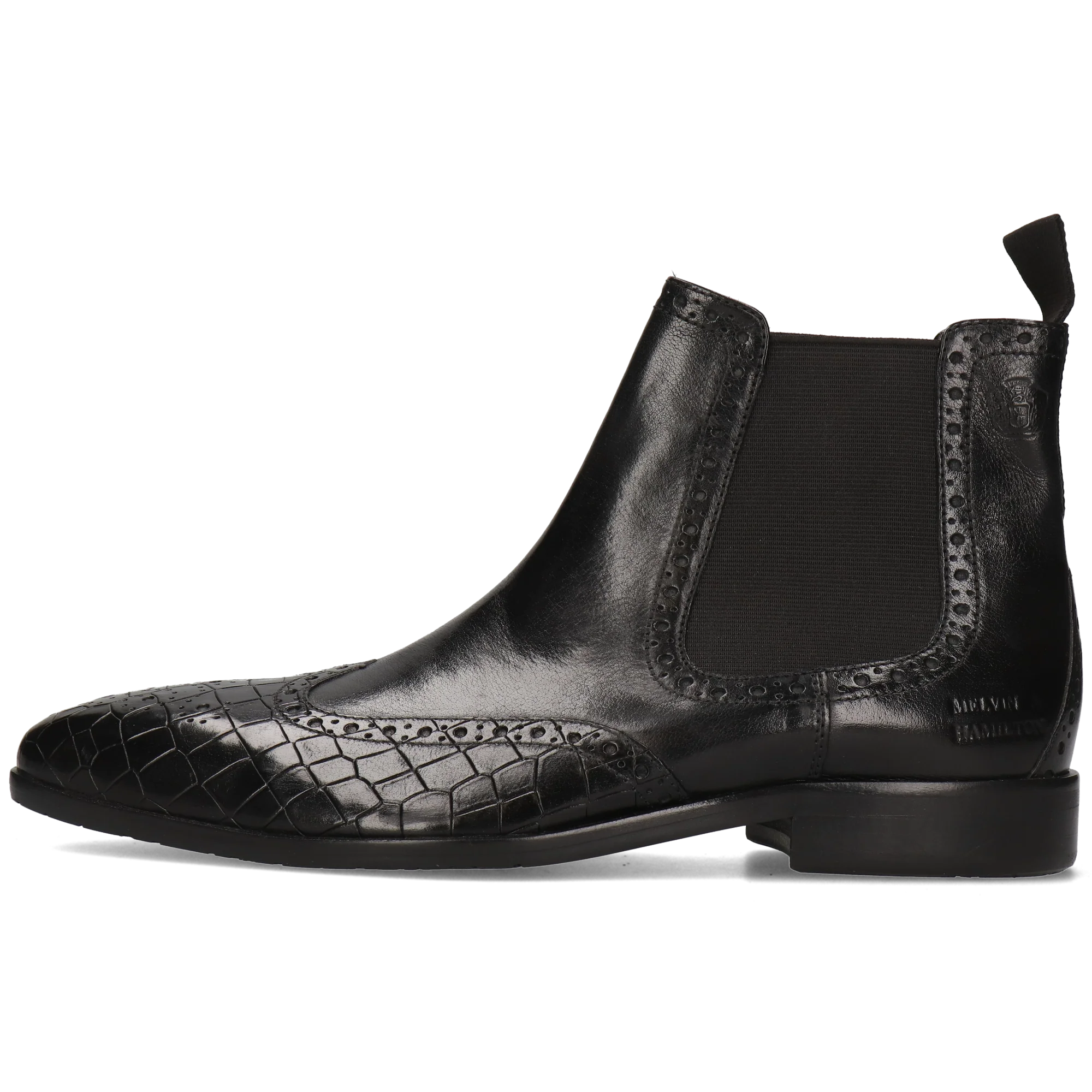 Craquez pour la collection printemps/été de bottines en cuir pour homme par Melvin & Hamilton. La marque a mis tout son savoir-faire du travail du cuir dans la conception et la fabrication de bottines d'exception, modèles phares même pendant la belle saison. Avec ce modèle Flynn 2, vous faites le choix de la qualité! Des bottines à bout carré en cuir de veau tannage végétal noir , rien de plus classique et de plus élégant même avec une petite touche originale, pour accompagner toutes vos tenues et notamment pour un look business chic. Ces boots à semelle en gomme noir ne se portent pas que en hiver, elles sont parfaites aussi en version plus printanière !