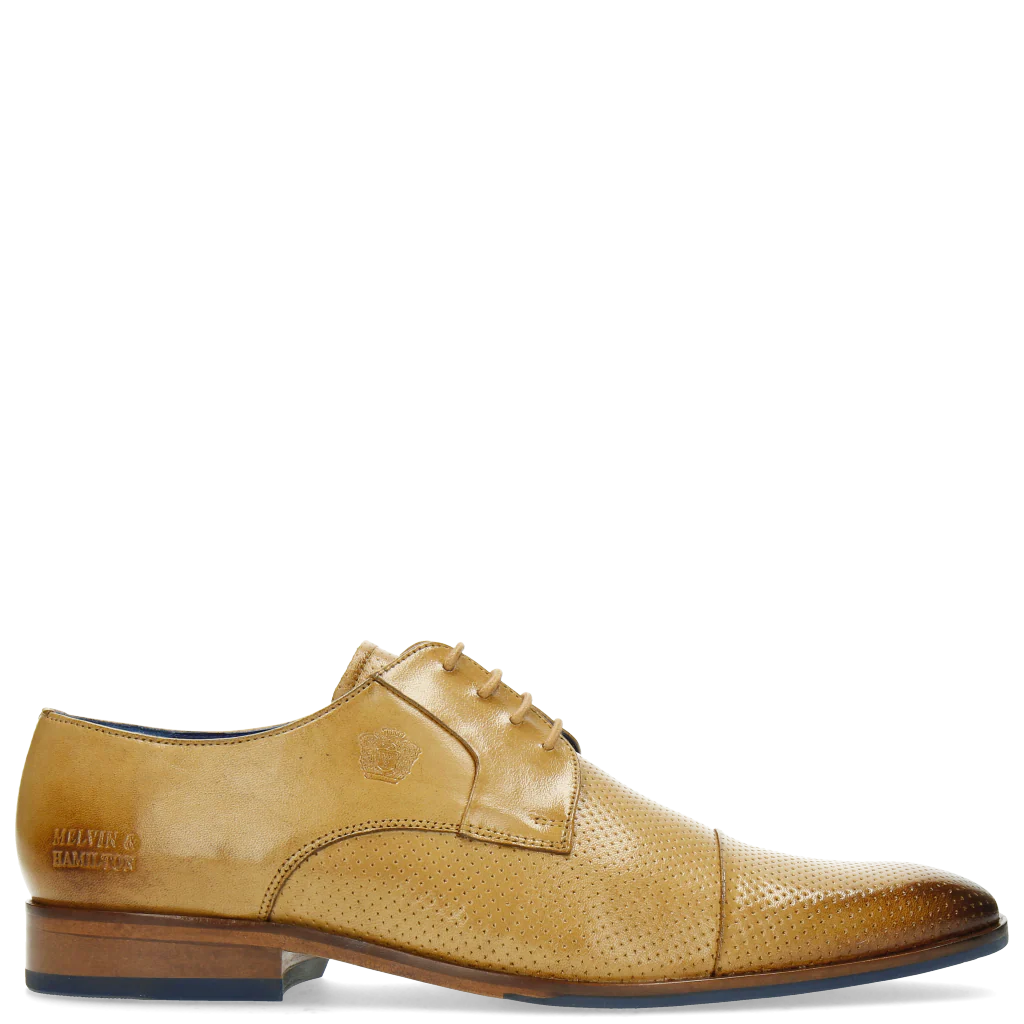 Sitôt les premiers rayons de soleil arrivés, et voilà qu'il nous prend l'envie de revoir l'ensemble de nos looks ! Pour la saison printemps-été 2018, succombez à notre gamme de chaussures derbies, telle que notre Rico 9 beige fabriquée avec soin par la maison Melvin & Hamilton. Élément incontournable du vestiaire masculin en toute saison, cette chaussure de ville classique se réinvente chaque année. En cuir lisse, suédé ou perforé, multicolore ou unicolore, avec une semelle en gomme ou en cuir, il y en a pour tous les goûts ! Shoppez vite la paire de derbies Rico 9 beige qui fera chavirer votre coeur !